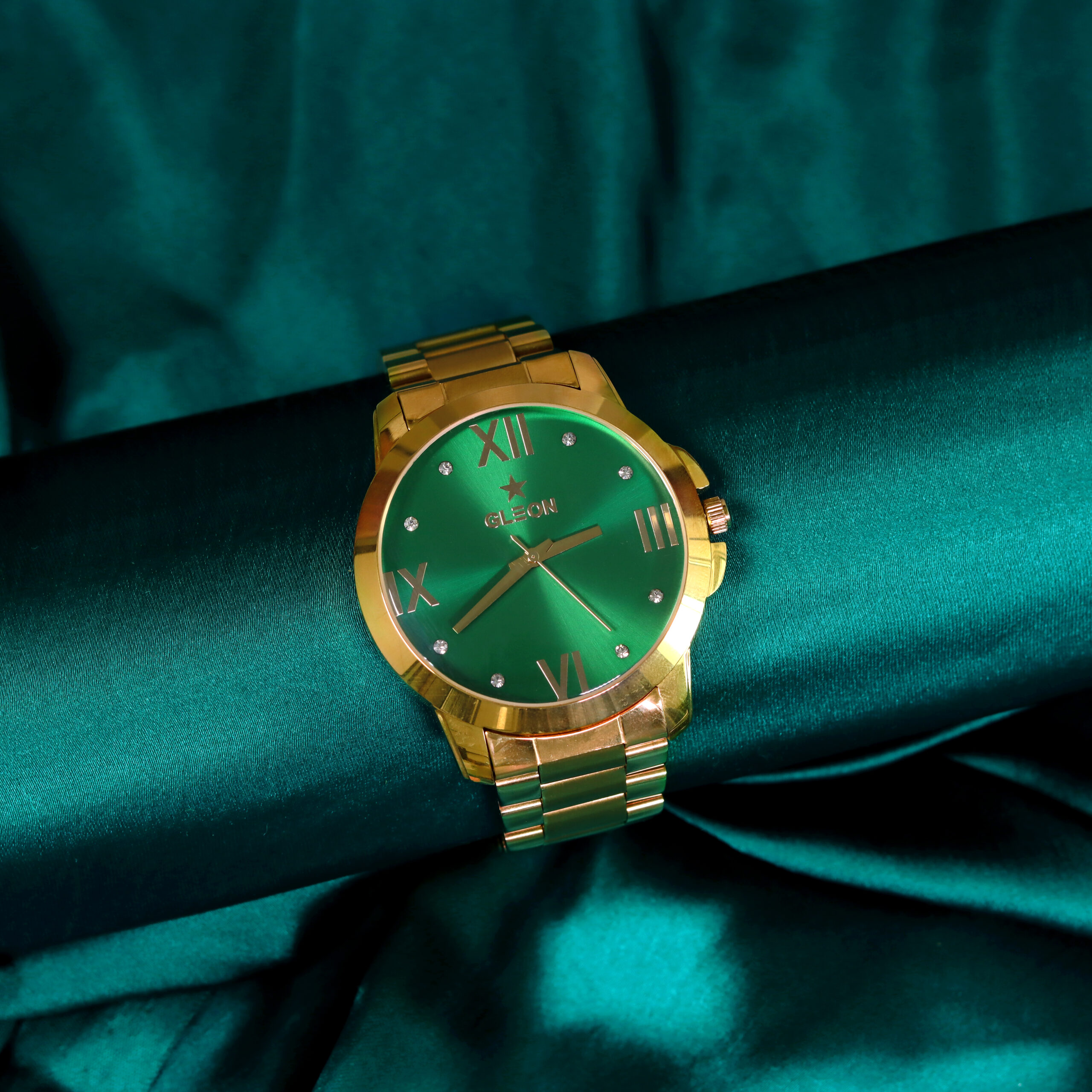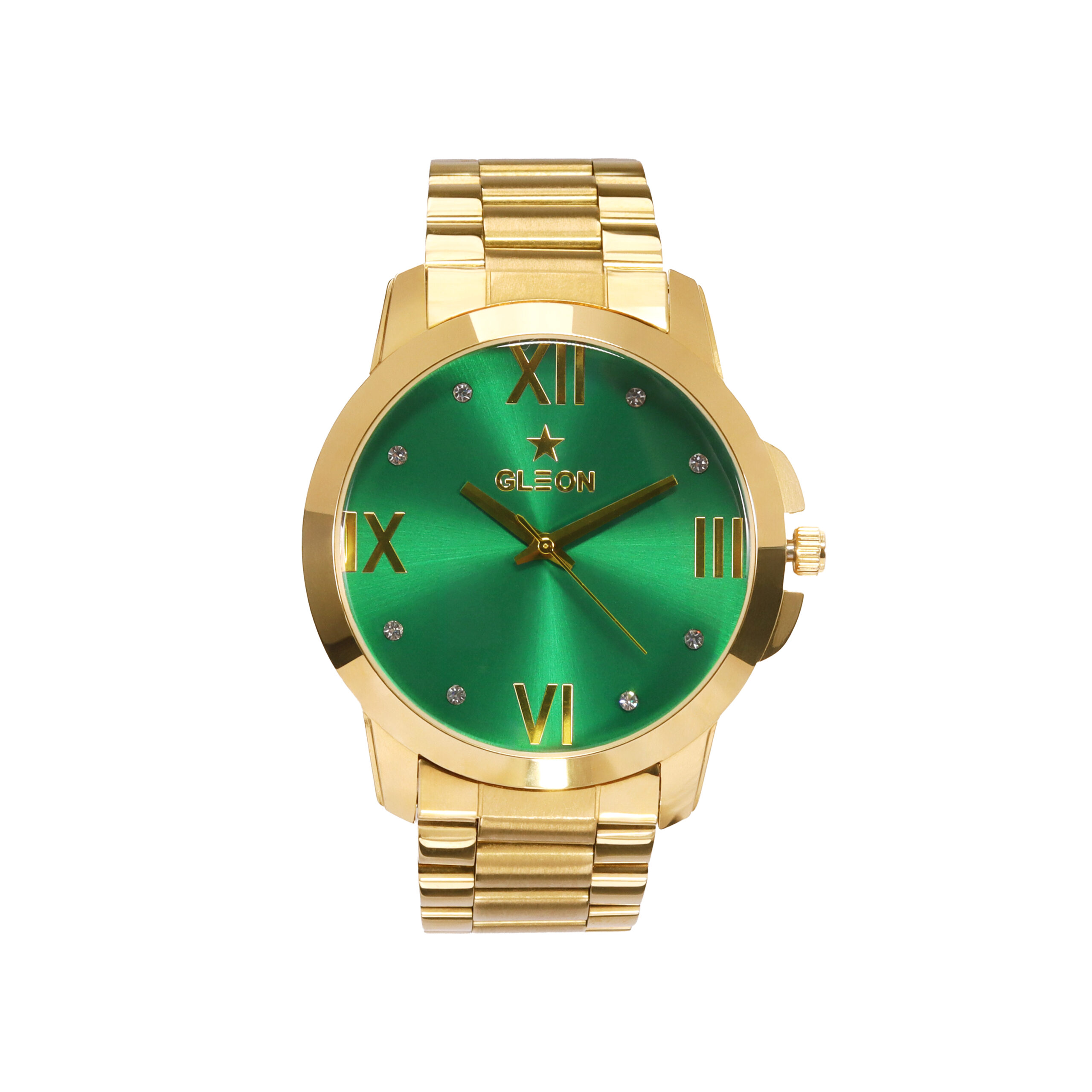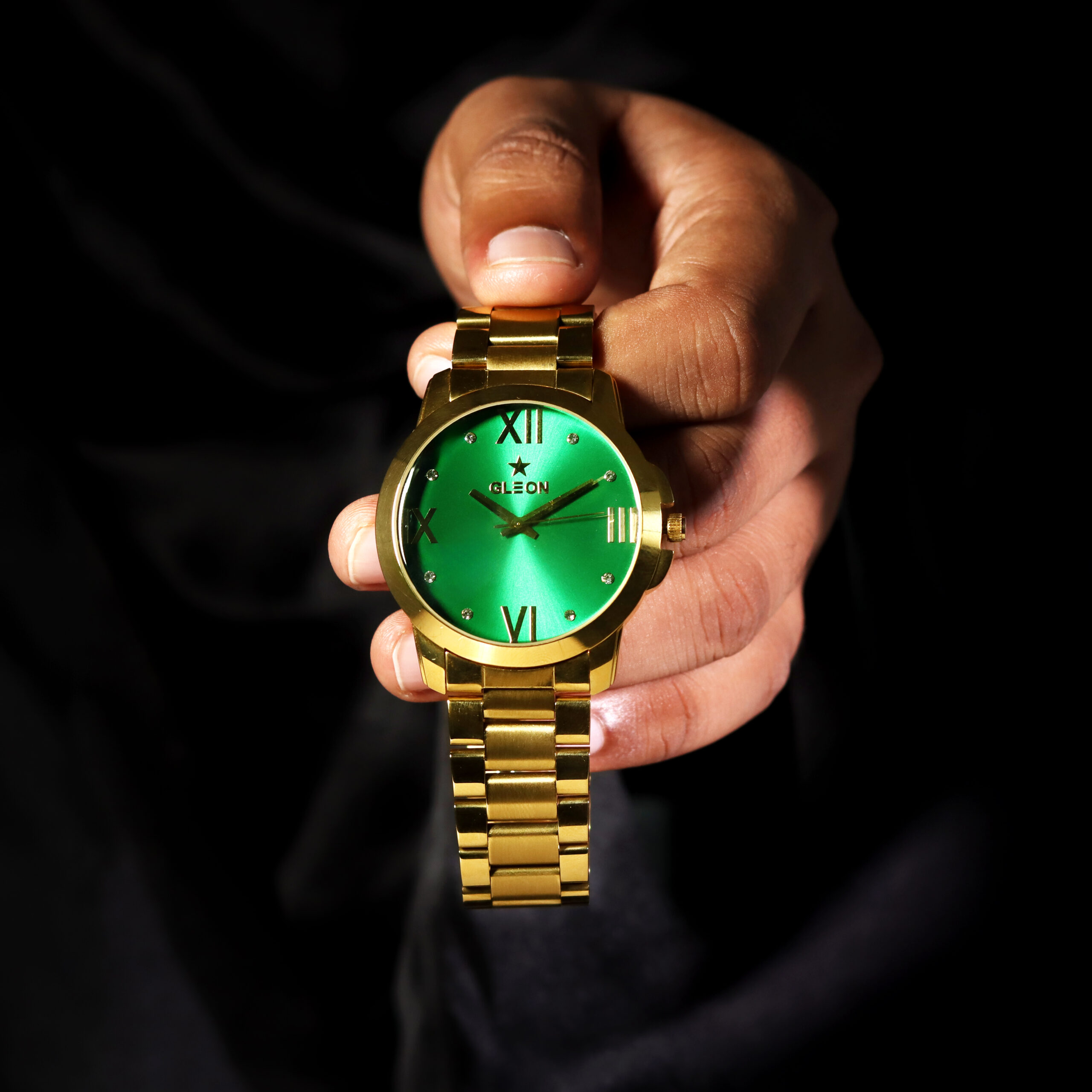 The GLEON WATCH makes a powerful statement with its emerald green sunburst dial and bold Roman numerals. Designed to stand out in business meetings, formal events, or everyday wear, it reflects ambition and authority with refined elegance. Crafted for entrepreneurs, professionals, and leaders, this timepiece blends sophistication with confidence—ensuring your presence is felt the moment you enter the room.